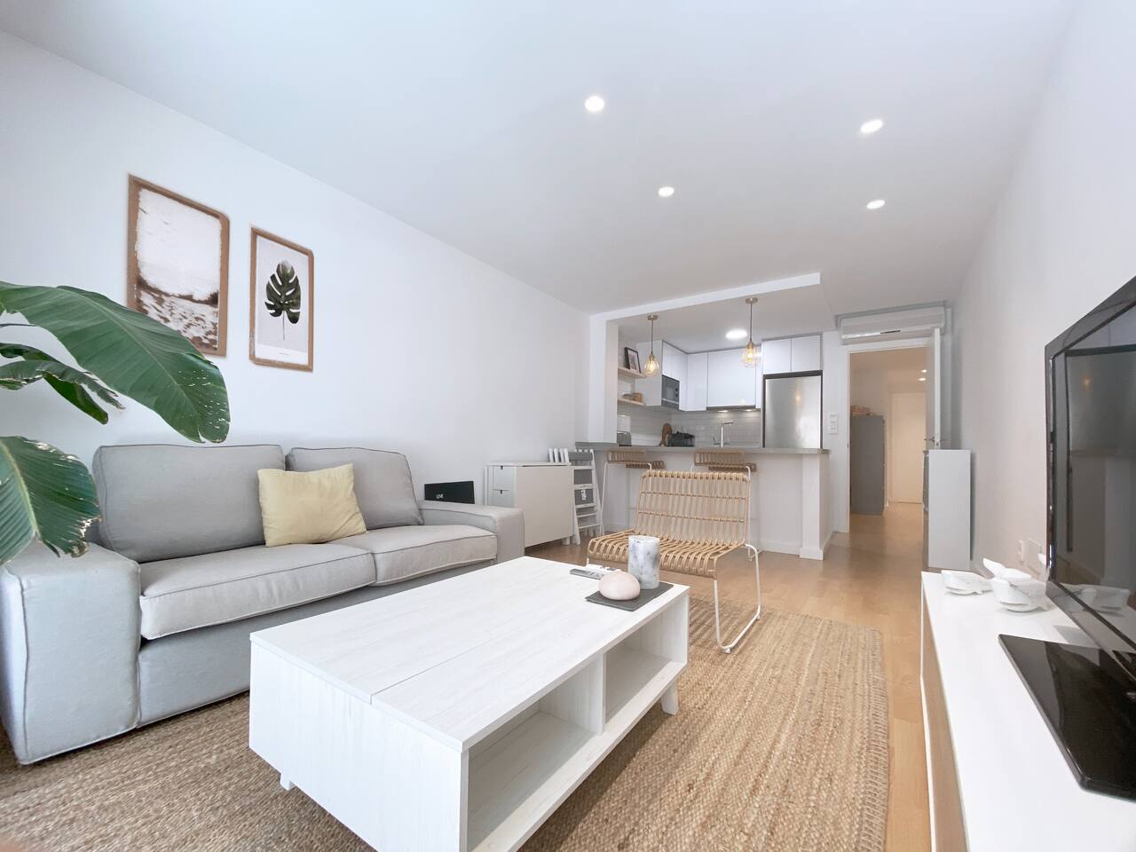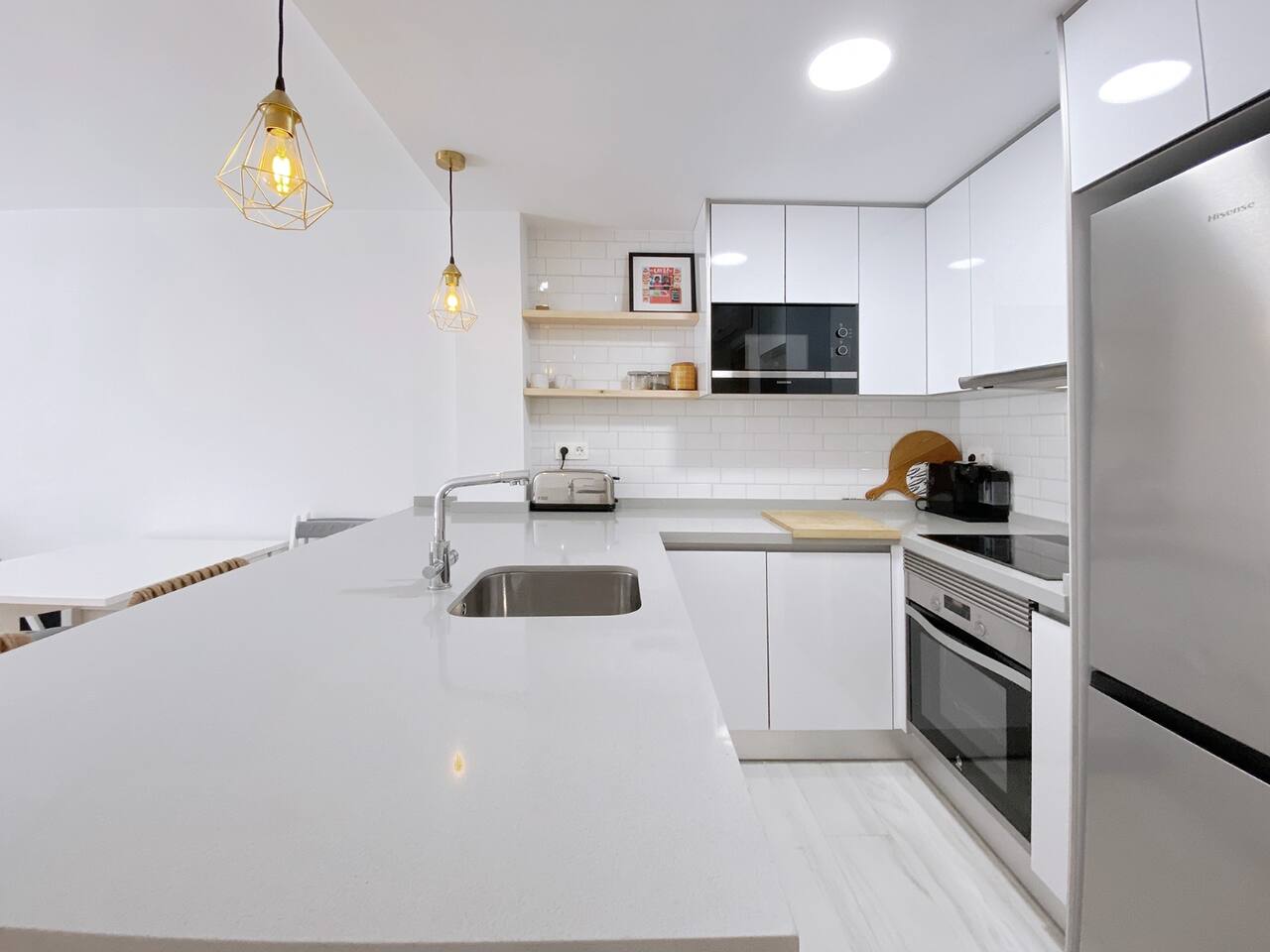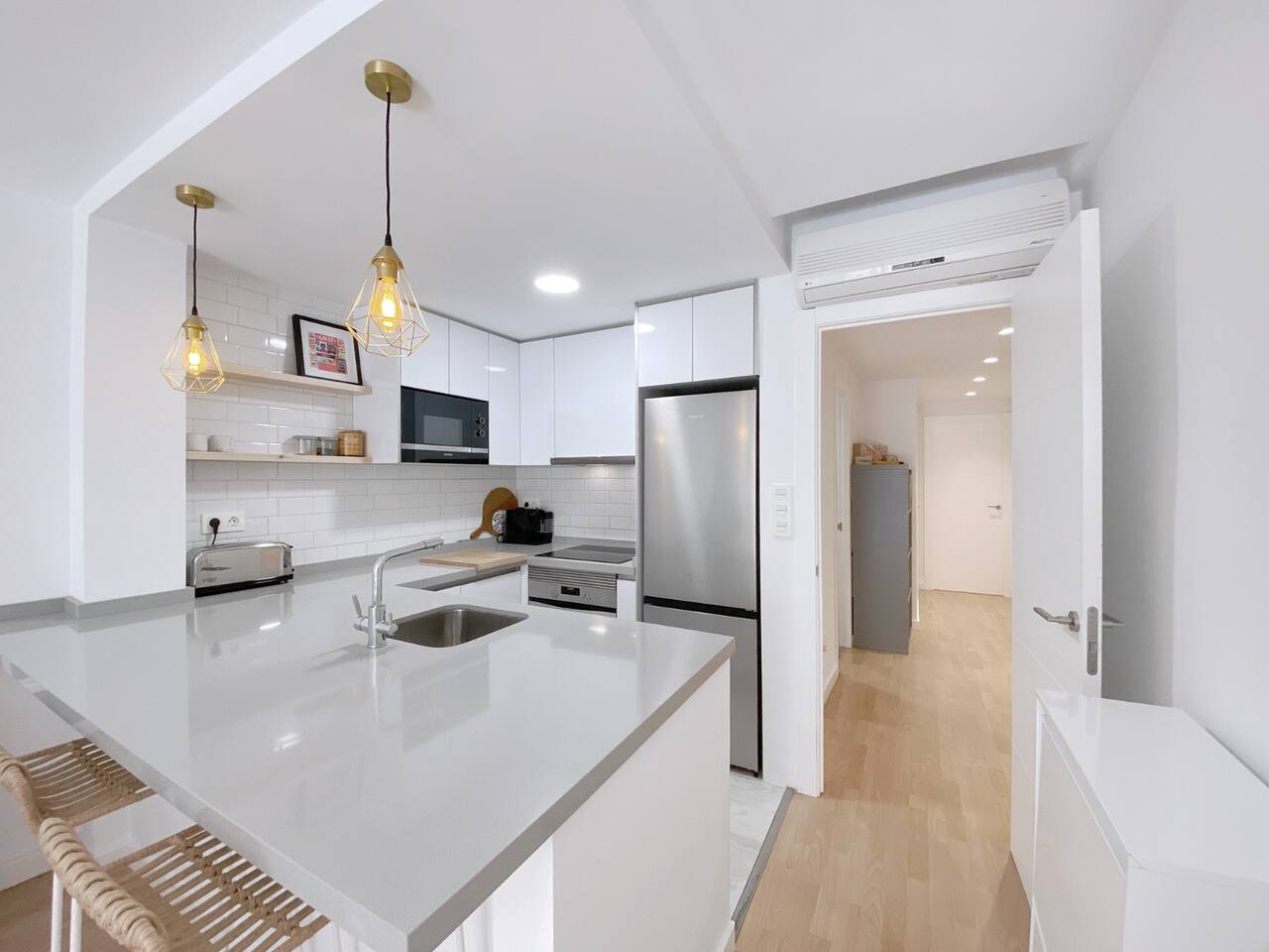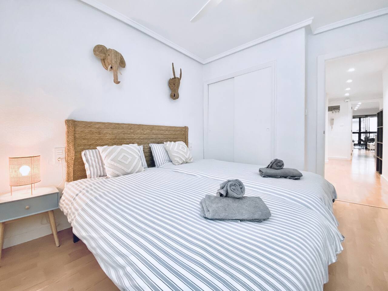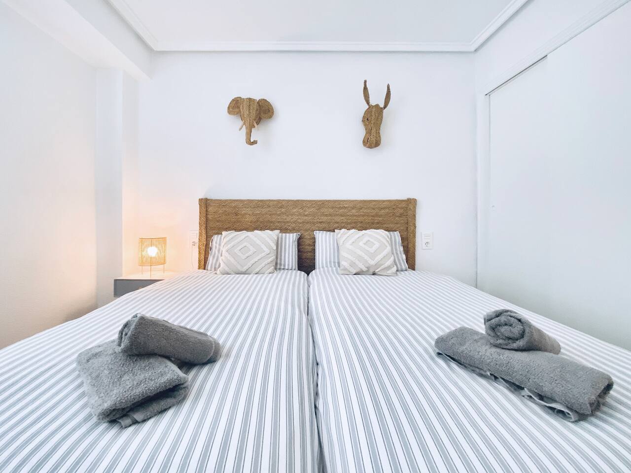 All the areas have split-like air conditioning and heating, plus ceiling fans in both rooms. Kitchen equipment includes dishwasher, fridge, filtered drinking water, oven, microwave, toaster and a Nespresso coffee maker. Wifi is available in all the space and there's a working desk for remote workers available in one of the rooms. Bed linen, towels and shower soap are provided for free. Extra cleaning can be delivered at a cost if you come for a long stay.