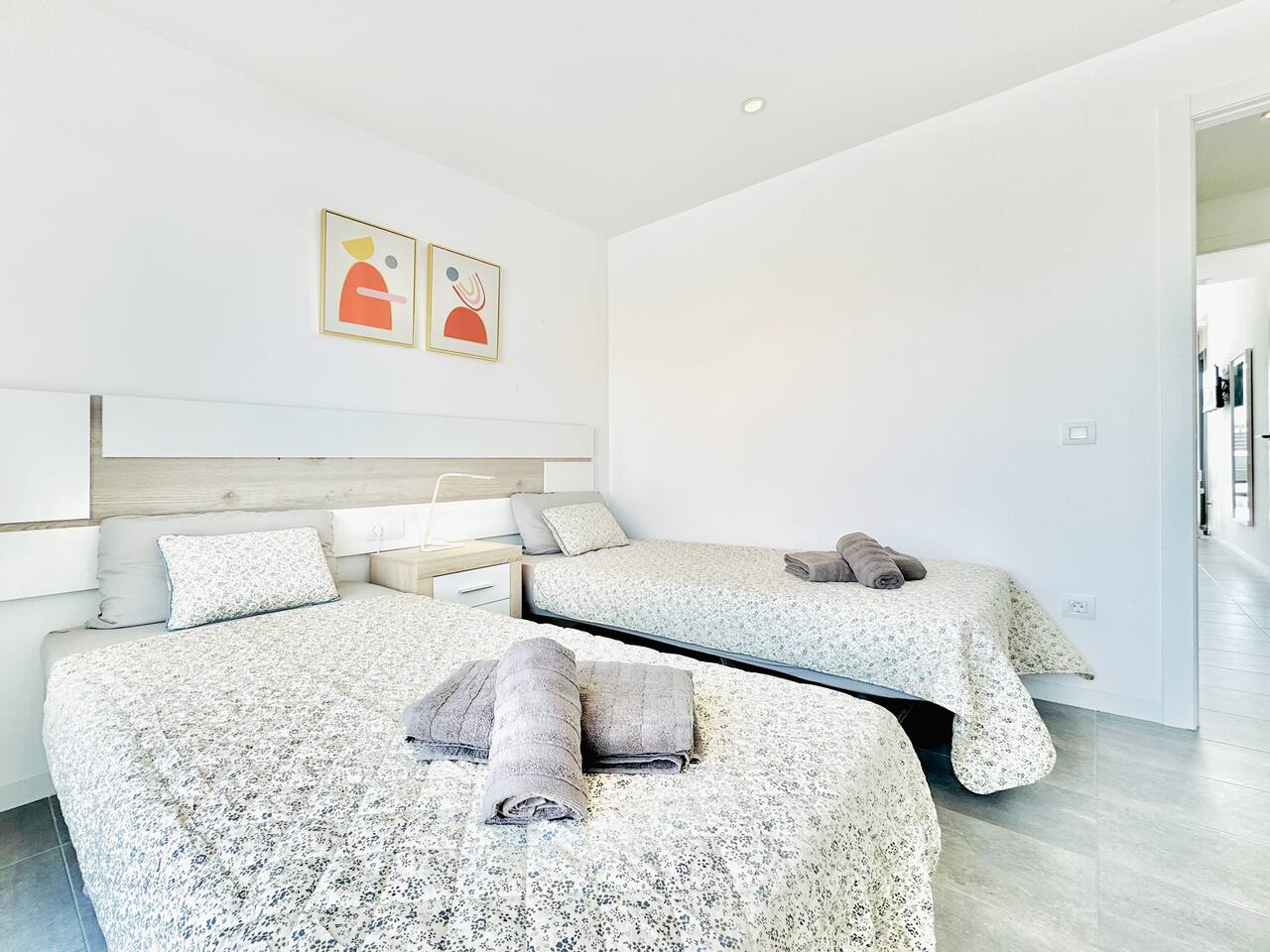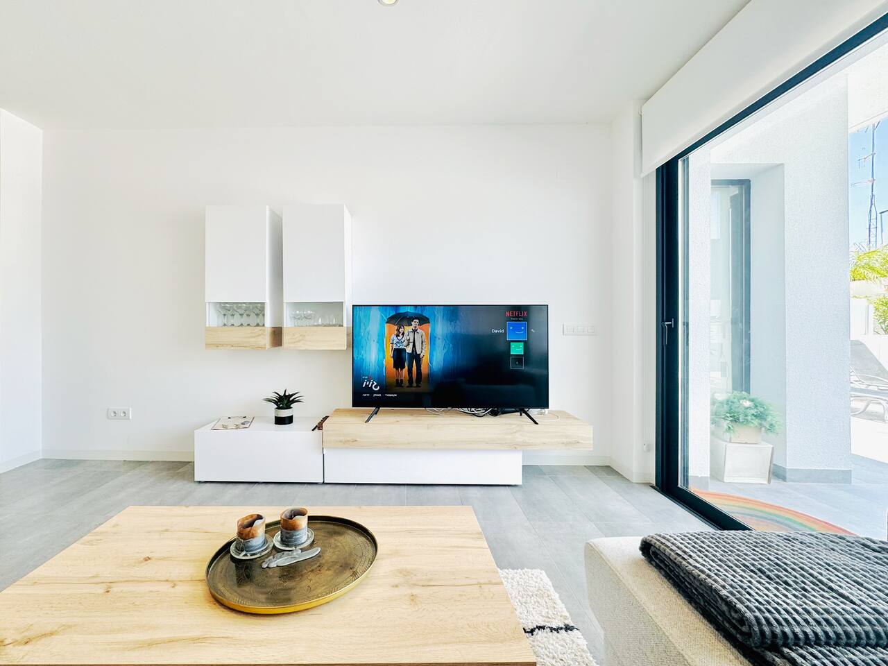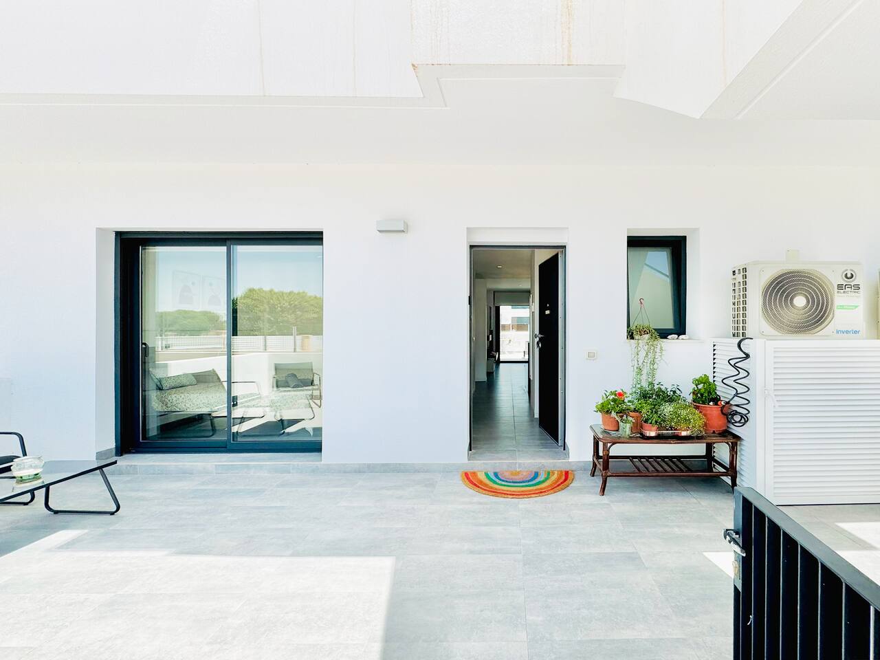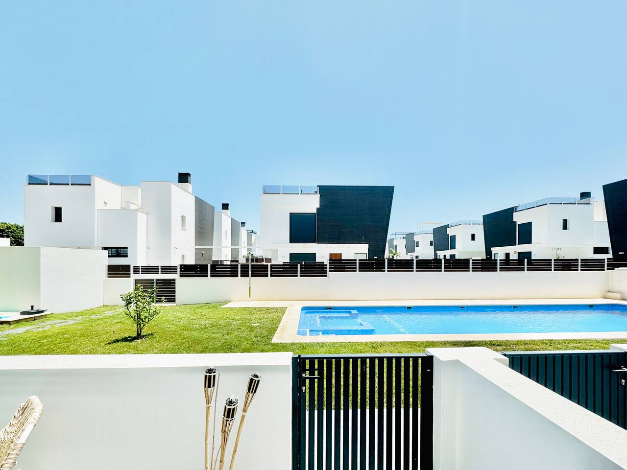 Enjoy beach life at this modern relaxing home, featuring an outdoor space with lounge sofa, and barbecue, facing the swimming pool, a spacious living room full of light, a fully equipped kitchen, 2double bedrooms, one with queen bed and one with 2 twin beds, and two bathrooms with shower.