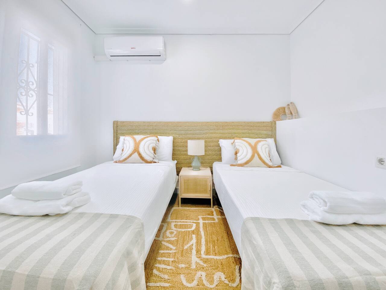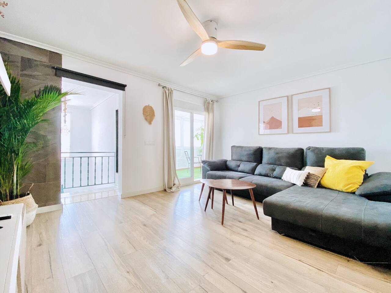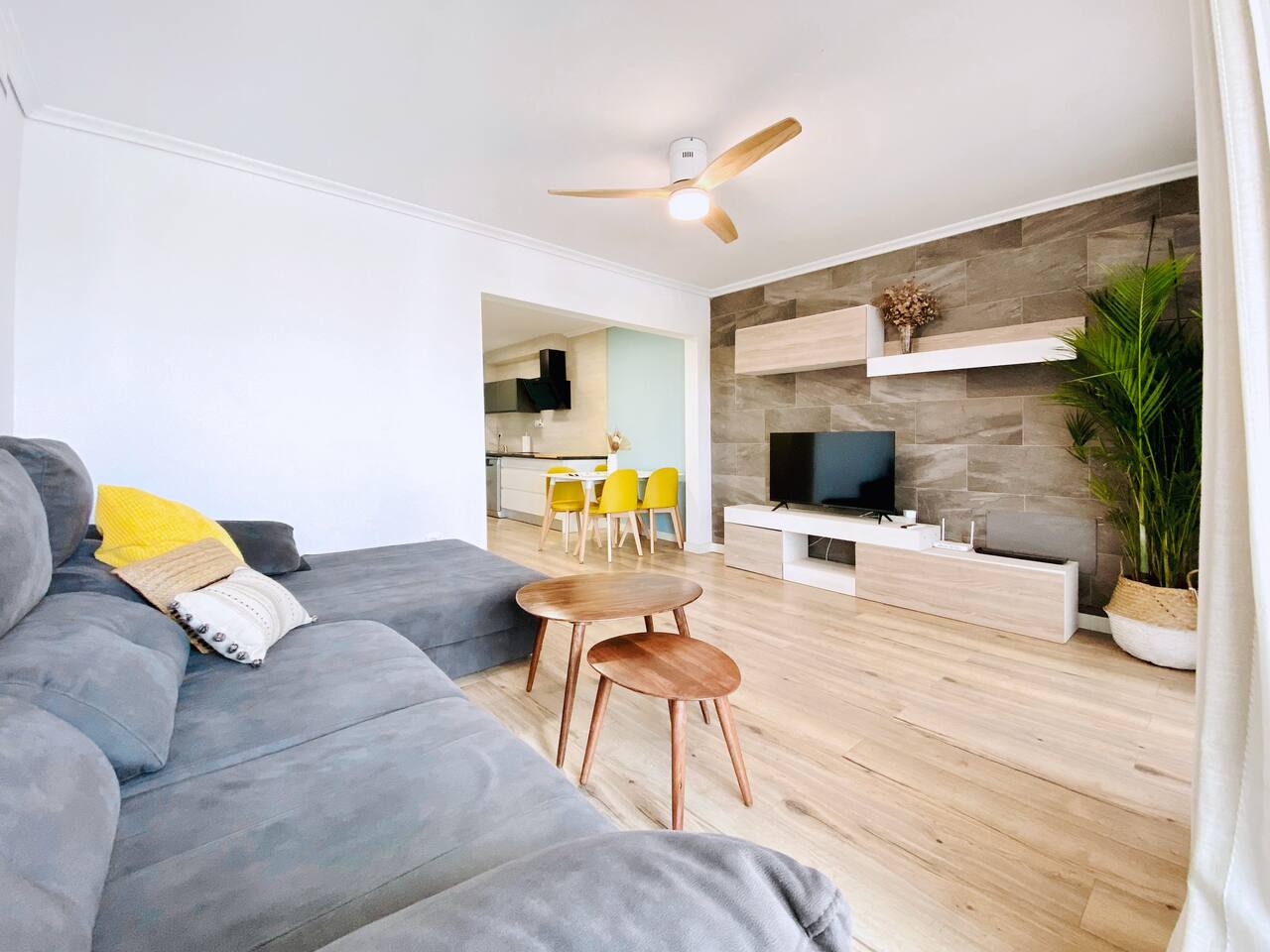 Enjoy your beach holidays on this refurbished 2-bedroom apartment, featuring a big outdoor terrace with a large sofa and a barbacue, a living room, a fully equipped kitchen, 2 double rooms with wardrobe, one with a queen bed and another one with 2 twin beds, and a bathroom with shower. A community area just 50 meters away includes a swimming pool, available for all guests.