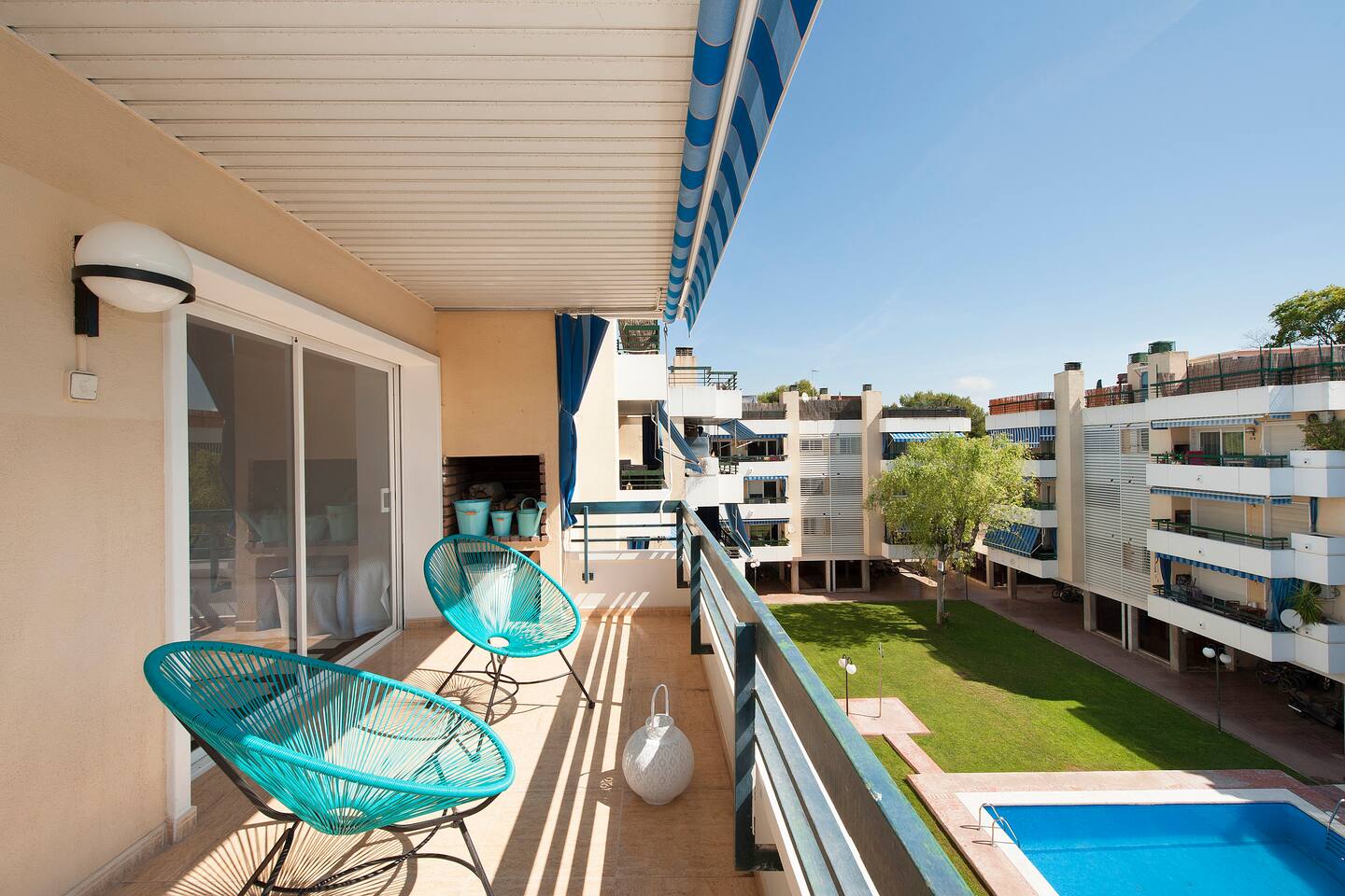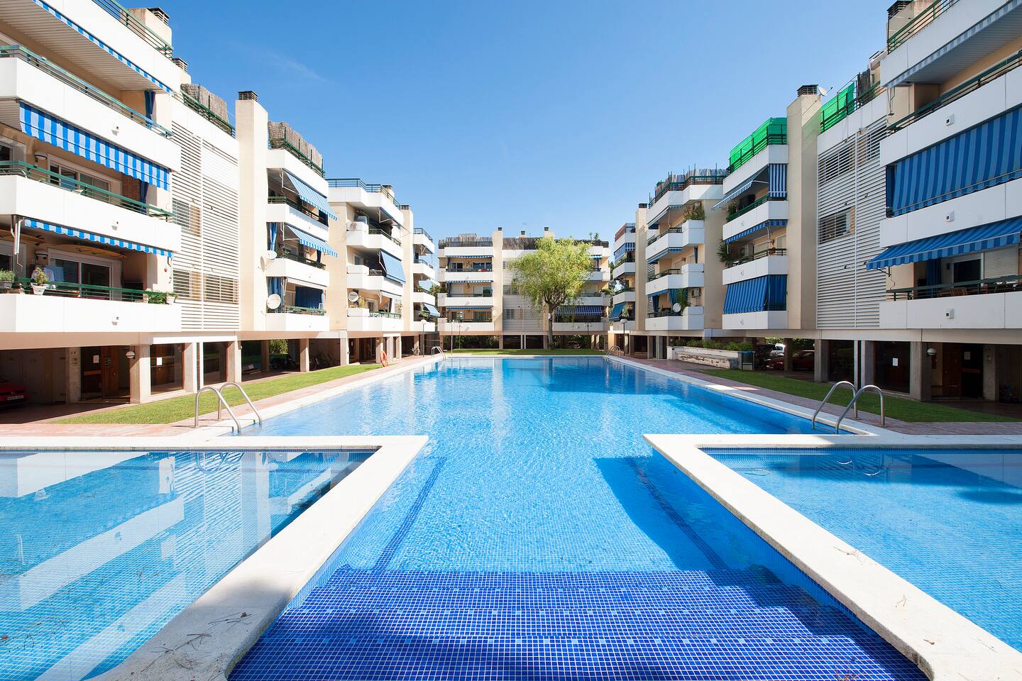 Enjoy this clean and modern apartment, located just 3 streets from the beach with a large communal pool. With three double bedrooms, one with double bed and two with two single beds, and two full bathrooms, you will have everything you need to feel at home with, in addition, a private terrace with barbecue, two parking spaces and a complete community area.